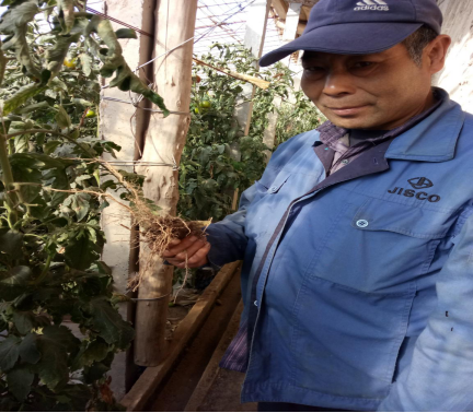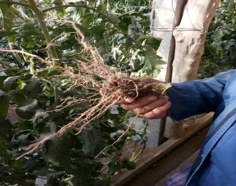 案例描述:武威羊下坝六沟许财元,电话:13679358089,使用巧农2号后西红柿长势情况:1.根系变发达。2.土壤疏松,土壤活性增强,蚯蚓活动频繁。3.西红柿色泽发亮,品质提高。4.挂果数量增多增产效果明显。5、没有死苗烂棵现象。
