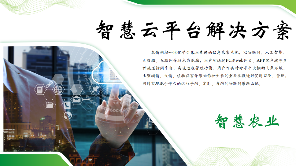 智慧农业整体解决方案是指利用现代信息技术,如物联网、大数据、云计算、人  ...